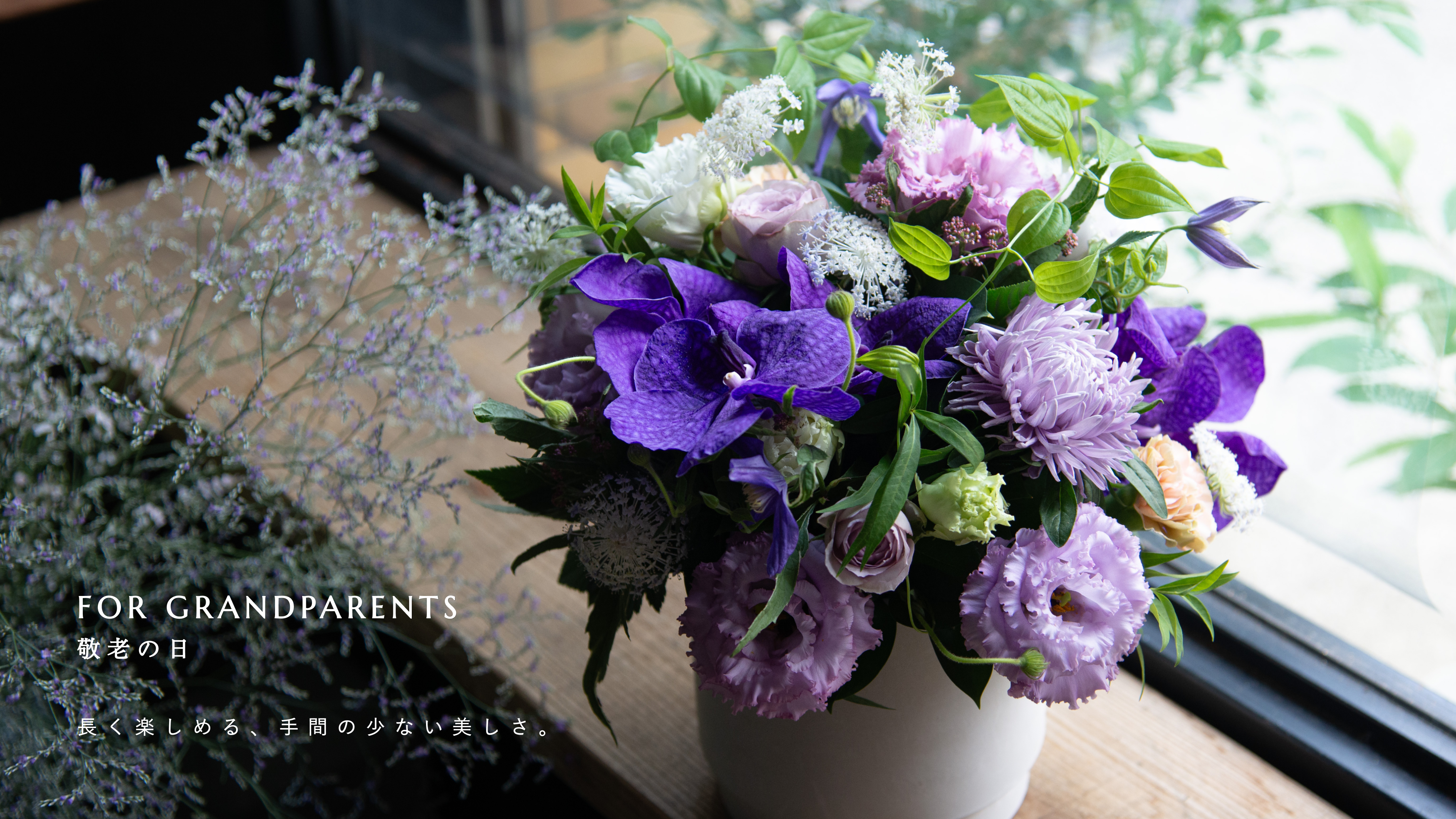 いつもお世話になっているおじいちゃんおばあちゃんに。感謝の気持ちとともに、フローリストが心を込めて束ねた花束(フラワーギフト)を送りませんか?
