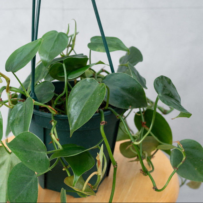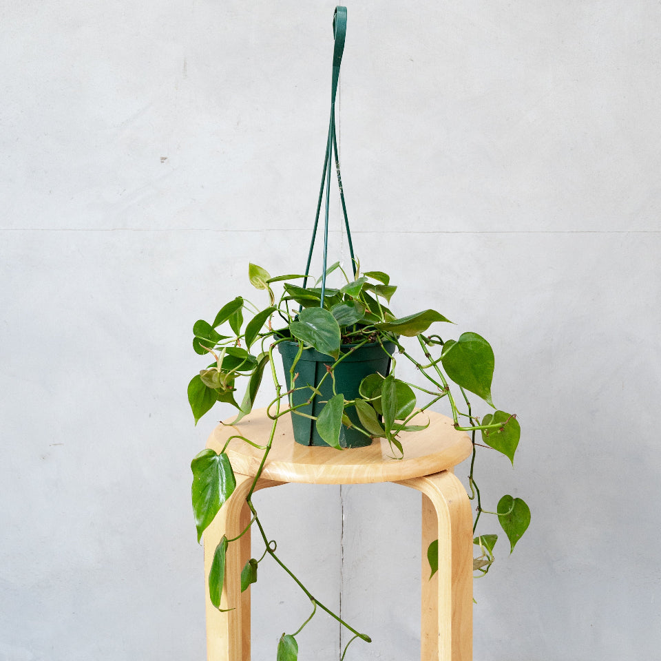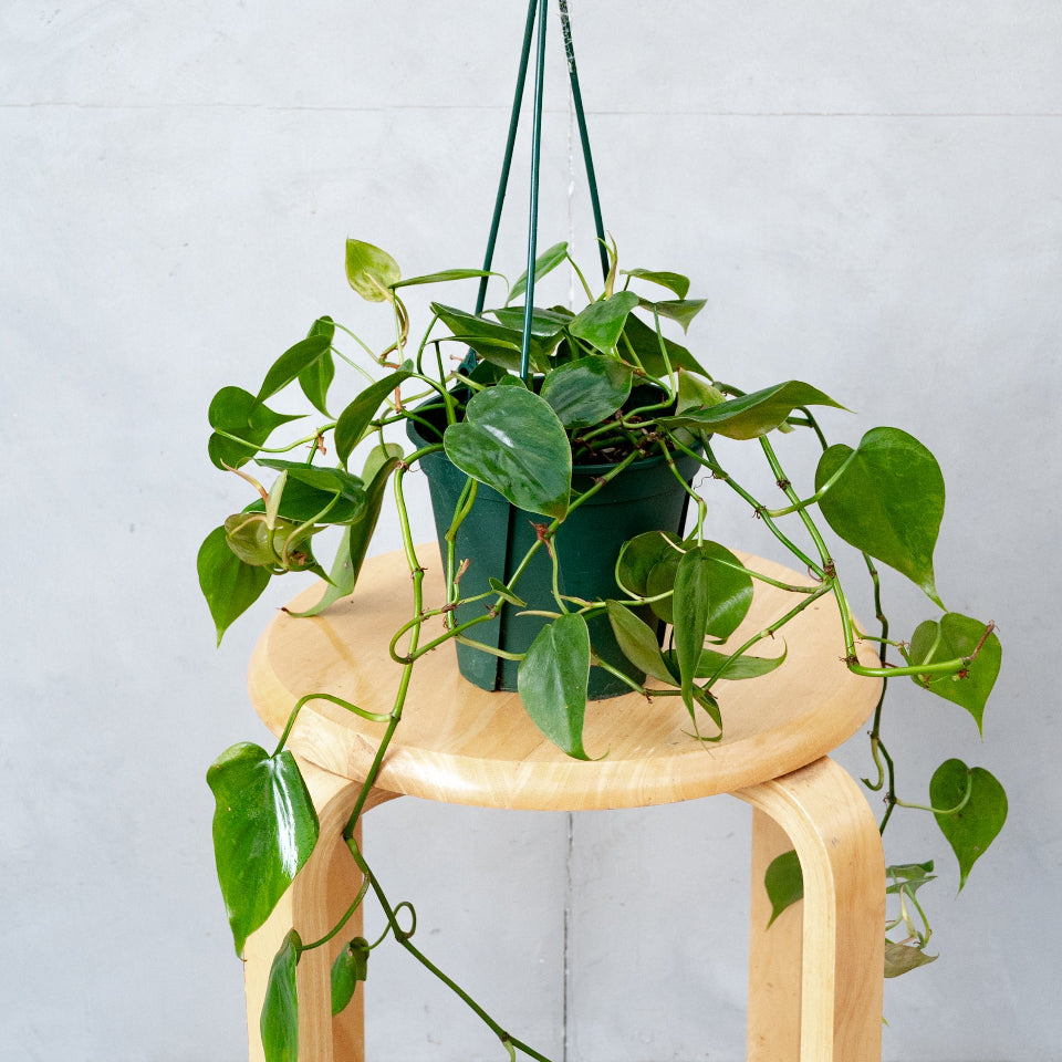 吊り下げタイプのフィロデンドロンは、ハート型の葉がゆるやかに連なり、風に揺れるたびに柔らかなリズムを生み出します。